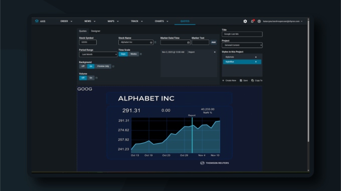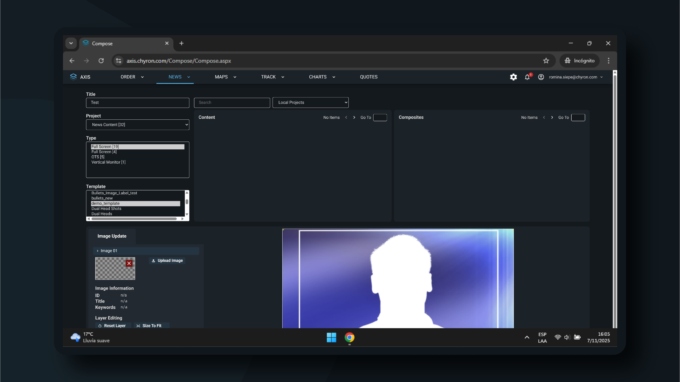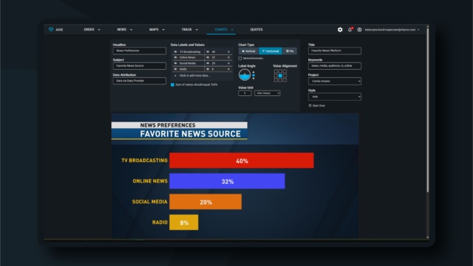 Chyron’s AXIS™ is the proven leader in secure, hosted, on-demand graphics order management, design and animation. With AXIS, everyone from reporters to editors to news producers can quickly locate images, maps and charts, to bring stories and data to life. Composition that once took hours now takes minutes, allowing your graphic artists to concentrate on more complex design while journalists get exactly the illustrations they need for their stories.